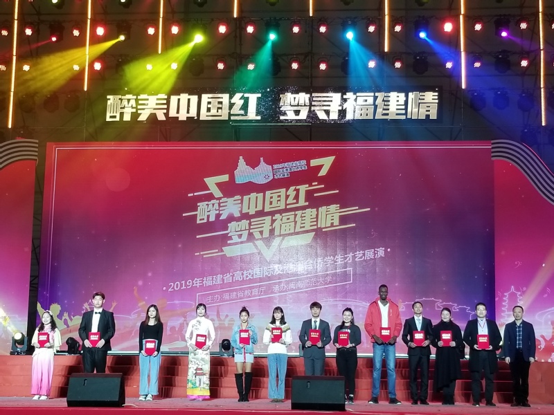12月30日,由福建省教育厅主办、闽南师范大学承办的2019年福建省高校国际及港澳台侨学生才艺展演活动圆满落幕。来自省内23所高校的300余名国际及港澳台侨学生共聚一堂,展现风采。我校境外学子以优异表现获得两个三等奖,及一个优秀指导老师奖。