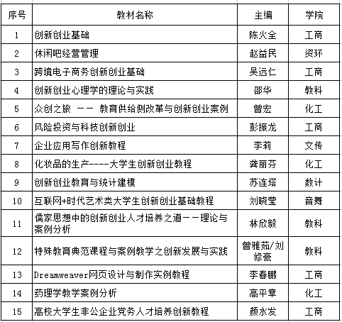 现将立项项目予以公布,请立项教材的主编认真做好教材编写工作,于7月8日前与创新创业学院签订《泉州388vip太阳集团创新创业教育教材资助协议书》(附件),保证教材按时编写及出版。