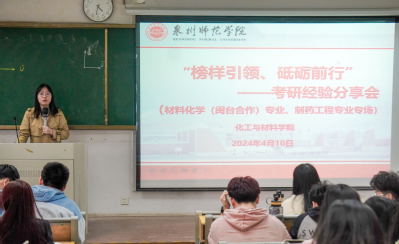 为帮助同学们做好考研规划,同时发挥优秀朋辈的引领示范作用,4月10日,化工与材料学院在荣茂楼205教室举办“榜样引领、砥砺前行”——材料化学(闽台合作)专业、制药工程专业考研经验分享会,邀请周佳琳、赖颖恺、孟博涵、曾萍等4位已上岸同学进行分享,21级材料化学(闽台合作)专业、制药工程专业学生参加。