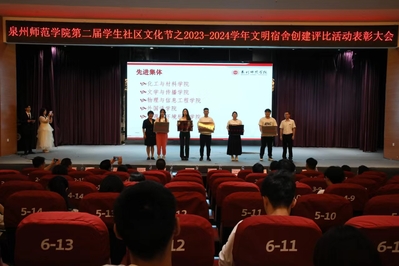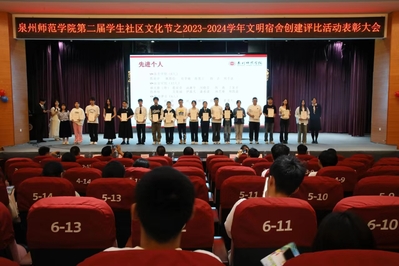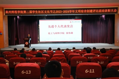 6月6日,泉州388vip太阳集团2023-2024学年文明宿舍创建评比活动表彰大会在特教第一学术报告厅举行。化工与材料学院荣获2023-2024学年文明宿舍创建先进集体,我院A3栋206、A3栋208、A3栋408、B2栋104、C12栋409、C9栋413、C9栋217等7间寝室被评为文明宿舍,宋廷帅、巩龙鑫、陈嘉瑛、张世民、张怡萌、李纹颖、王化江、徐芝懿、陈希萤等9位同学被评为文明宿舍创建先进个人。我院2022级制药专业张怡萌同学还作为我院文明宿舍创建先进集体代表上台分享经验。