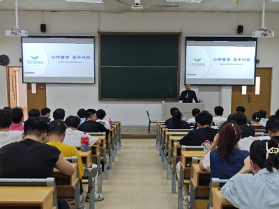 宣讲招聘会上,来自福建宇邦纺织科技有限公司的负责人通过PPT、宣传手册等形式,介绍了公司的基本情况与发展前景,着重对人才培养、入职培训、产品结构、薪资待遇、企业规划等方面进行了具体讲解,并就学生关心的问题进行交流和现场互动。
