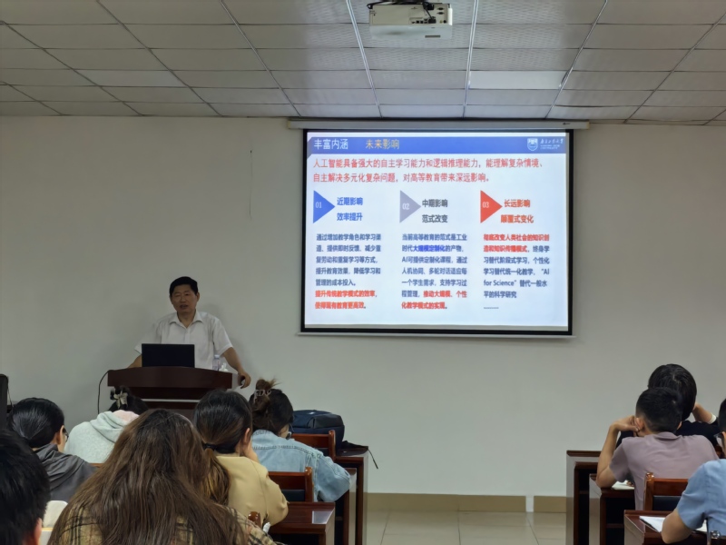 管国锋深入剖析了当前化工专业教学面临的挑战,并阐述了人工智能在其中所能发挥的巨大作用。他从时代背景、丰富内涵、实施途径等三个方面提出对化工课程教学改革的思考。从师生角色、师生关系、教学内容、教学过程、教育环境等方面的变化,创新性地提出人工智能赋能化工专业课程教学改革的实施途径。讲座结束后,化工专业的老师热情高涨,积极参与互动探讨,大家就讲座内容、人才培养和工程教育专业认证等方面提出一个个犀利又深刻的问题;管国锋教授现场给予解答,不同观点相互交织,不断碰撞迸发出学术思想的火花。此次讲座具有很强的前瞻性,对我院化工专业教学改革有着重要的启发意义。