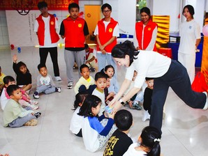 趣味运动会设有背靠背运球、夹球跑、数字抱团等趣味项目。现场气氛热烈,小朋友们密切配合、全力以赴,展现出团结协作的精神风貌。趣味运动会前后,志愿者们布置活动现场、指导小朋友了解项目规则、当裁判、发奖品,完满完成各项任务。