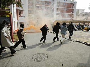 在准备阶段,我院根据每个宿舍区的居住特点和地理位置,通过实地考察合理设计学生的逃生路线,并制作成电子逃生路线图,通知到每一位参加逃生演练的同学。在活动过程中,我院辅导员及相关部门负责人在各楼层积极维持秩序。待哨声响起,同学们立即按照火灾逃生路线规范行动起来。大家纷纷用衣物或手捂住口鼻,身姿下弓,沿着事先规划好的逃生路线,迅速向规定安全区撤离。