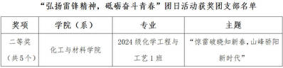 我院2024级化学工程与工艺1班团支部获“弘扬雷锋精神,砥砺奋斗青春”团日活动二等奖
