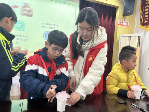 活动中,团支部成员带领少先队员们制作“晴雨花”,他们将氯化钴溶液与氯化钙混合,见证纸花颜色变化,了解其预测天气的原理。这一过程激发了少先队员们对科学的兴趣,也让他们感受到化学与生活的紧密联系。晴雨花的颜色变化,恰如革命先烈们在历史长河中坚守信仰、绽放光芒,象征着科学精神与红色血脉的交融。