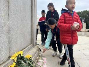 活动最后,团支部成员与少先队员们手捧晴雨花和菊花默哀致敬,接着共同宣誓,承诺以实际行动传承红色基因,赓续革命精神。然后依次从左向右顺时针缓步绕行瞻仰烈士纪念碑,并敬献鲜花。