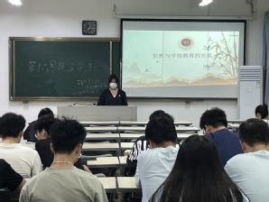 我院林钦杰、朱旋旋等7位辅导员分别深入学院各班级团支部,围绕“学习宗教政策法规,树立正确的宗教观”主题,结合学院特色展开主题学习。活动过程中,教师团干向学生讲解宗教政策法规的相关内容,强调正确的宗教观在新时代青年成长过程中发挥的重要作用。随后,各班团支书组织班级同学通过小组讨论、知识竞答等方式深入体会宗教政策法规的思想内涵,深刻认识正确宗教观的重要性。